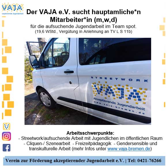 Es handelt sich um eine Teilzeitstelle für die Aufsuchende Jugendarbeit im Bremer Stadtgebiet.