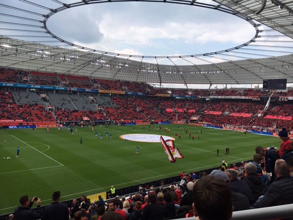 Am Samstag besuchten wir das Bundesligaspiel Bayer Leverkusen gegen Schalke 04 in der BayArena in Leverkusen. Karim Bellarabi sponserte uns netterweise die Eintrittskarten für das Spiel und nach dem Spiel trafen wir ihn beim Stadion zu einem lockeren Gespräch. Das war natürlich ein absolutes Highlight für die Jugendlichen.