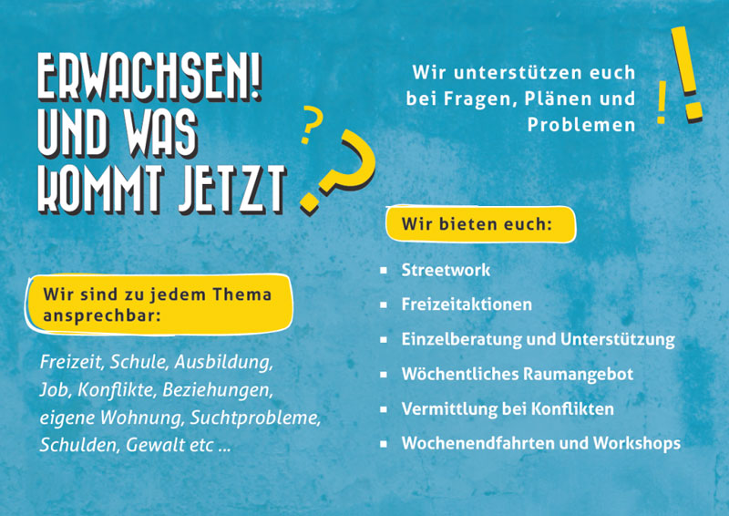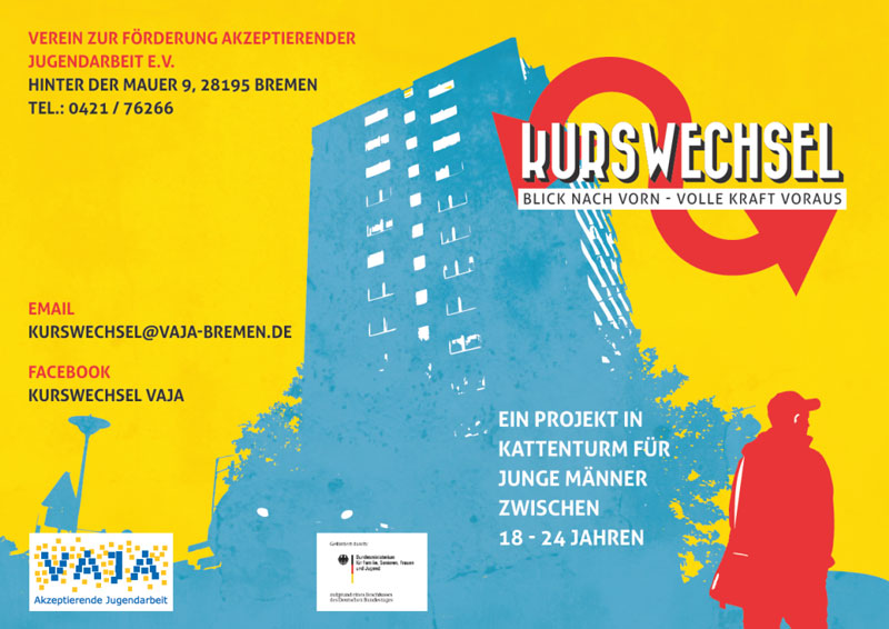 Die VAJA-Mitarbeiter/innen von KURSWECHSEL sind an mehreren Nachmittagen pro Woche in Kattenturm anzutreffen und stehen den Jugendlichen und jungen Erwachsenen mit verschiedenen Angeboten zur Seite. Diese sind in einem Alter, in dem sie sich hohen Anforderungen, oftmals schwierigen Lebenssituationen und wichtigen Entwicklungsschritten, wie beispielsweise der Berufs- und Identitätsfindung oder der Ablösung vom Elternhaus gegenüber sehen. Aufgrund ihrer Volljährigkeit sind die jungen Männer bei der Bewältigung dieser Aufgaben jedoch häufig auf sich allein gestellt. Diesen spezifischen Bedarf der genannten Zielgruppe nehmen die VAJA-Streetworker/innen seit langem im Stadtteil wahr und entwickelten konzeptionell ein Unterstützungsangebot, welches das BAMF überzeugte und nun die Jugendarbeit in Kattenturm bereichert.